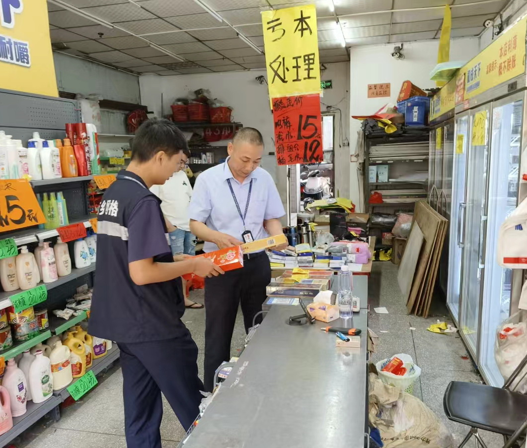 10月12日14时许,西乡街道固兴社区网格巡查中队网格员彭红强、蒙玉杰在辖区巡查时,发现固戍一路某工业园一便利店正在清仓促销。网格员入店检查后发现店里所售香烟价格远远低于市场价,疑似售卖假烟,于是立即向固兴网格中队报告。