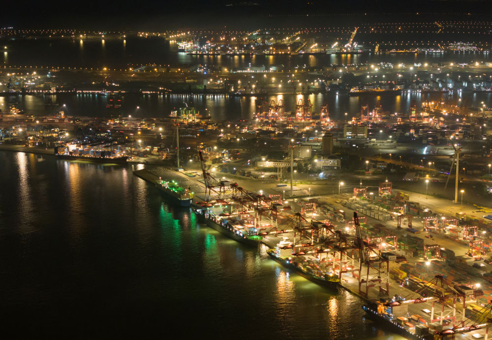 这是5月27日晚拍摄的天津港一景(无人机照片)。新华社发(韩喜龙 摄)