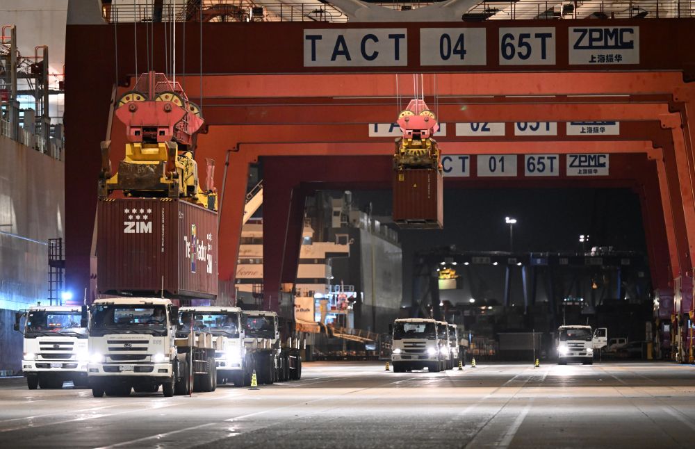 午夜,天津港第四港埠有限公司码头仍然一片繁忙。