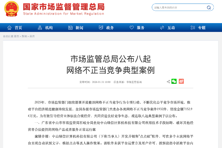 销售“刷量”软件自动抓取数据,中山这一公司被罚100万元