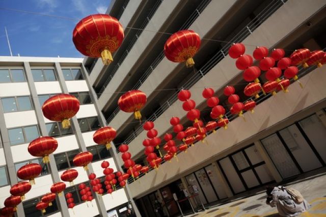 在香港九龙深水埗,游客在美荷楼青年旅舍拍照“打卡”。新华社记者王申摄