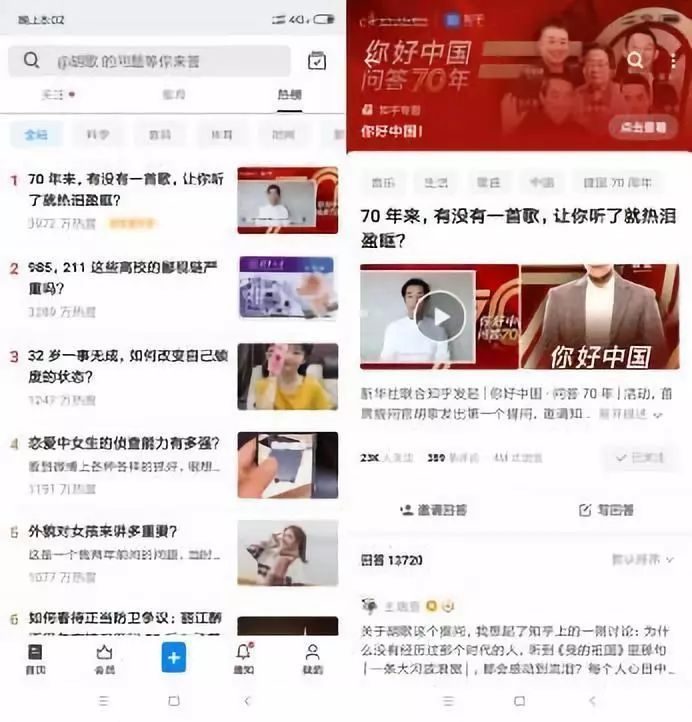 “70年来,有没有一首歌,让你听了就热泪盈眶?”短短2天,这个问题成为知乎热榜的第一名,回答中有家国情怀、有个人经历,将深藏心中的歌曲变成一个个饱含深情的记忆。不同年龄、不同地域的网友,因为心中的那首歌,澎湃着怎样的深情?