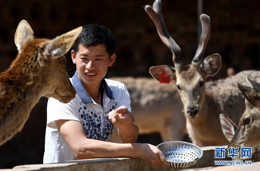 “80后”青年赵洋洋在鹿舍里忙碌,身旁的梅花鹿膘肥体健。刚刚摘下贫困帽的年轻人雄心勃勃,计划用互联网把鹿茸产品卖出大山。