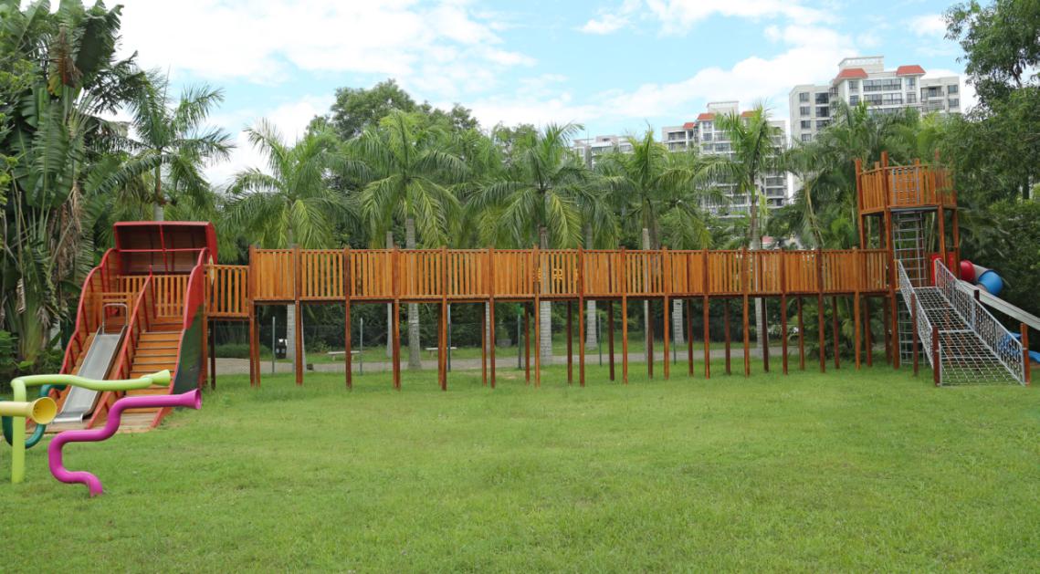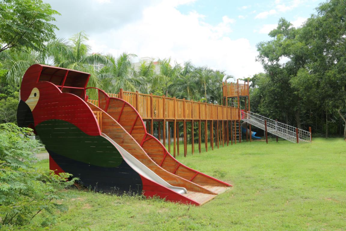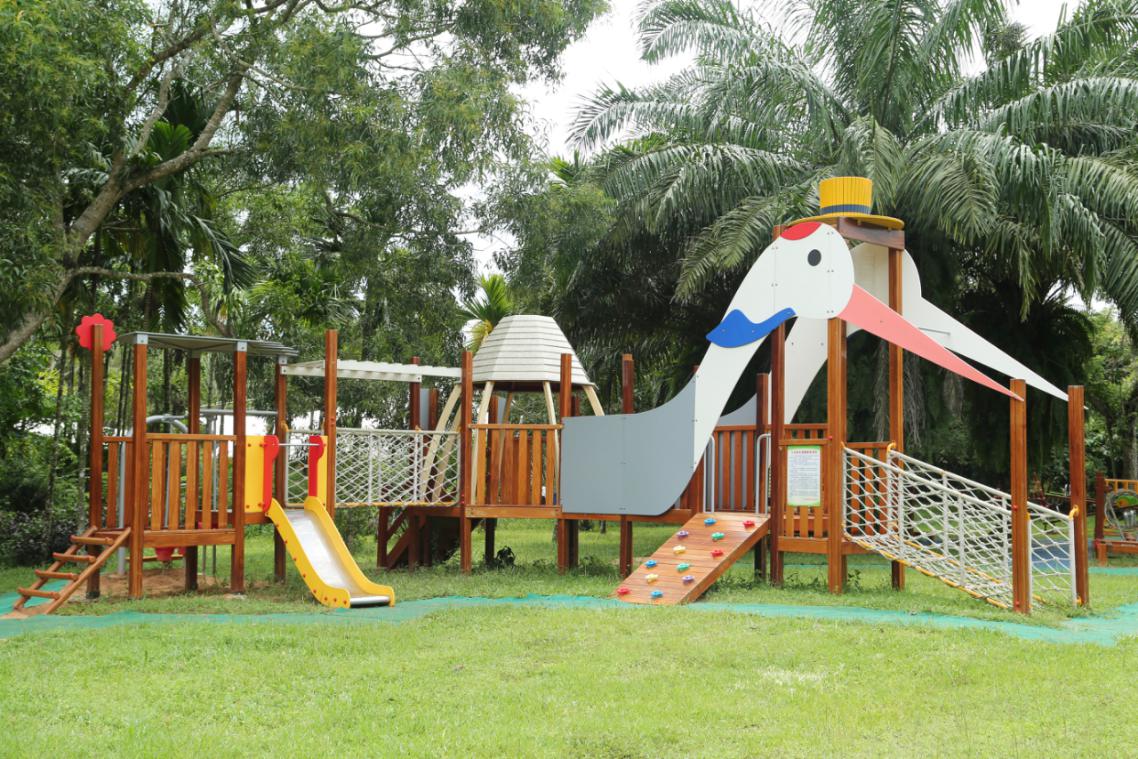 海南热带飞禽世界的无动力游乐园,由牧童集团匠心打造,设计师深入走访当地,了解乐园的文化和地域特色,并结合如今市场上亲子喜爱的热门无动力设施情况,为当地定制了一整套独具特色且功能丰富的无动力游乐设备。