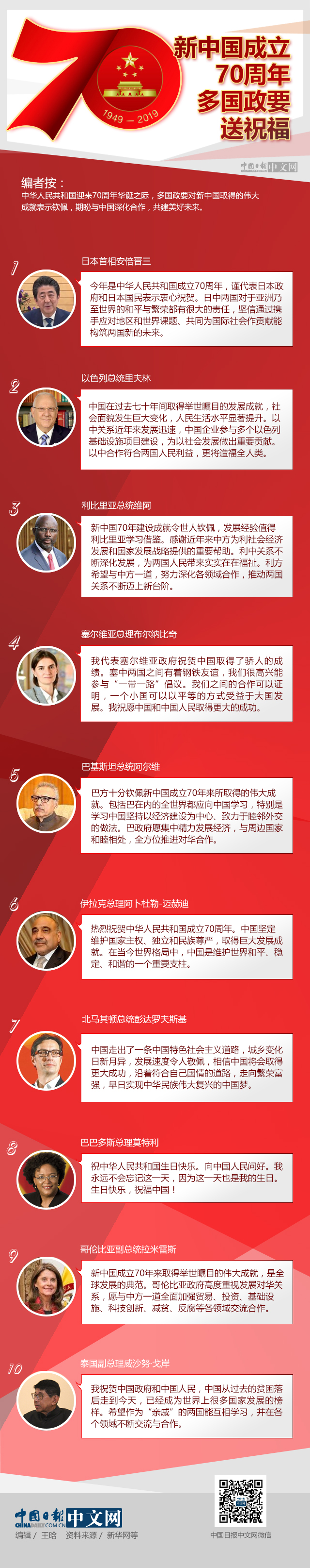 图解 | 新中国成立70周年 多国政要送祝福