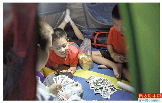 2019年11月9日,深圳宝安海上田园景区举行第四届深圳宝安帐篷节。夜幕降临,宝安小学的同学们在帐篷里玩牌。