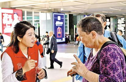 面对外国旅客,义工以流利的英语为他们答疑解惑。