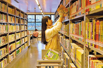 宝安图书馆,“文化义工”整理书籍上架。