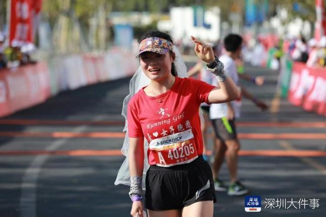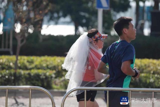 12月15日,2019年深圳国际马拉松鸣枪开跑,这是深马举办的第七年,本届赛事设马拉松(42.195公里)、半程马拉松(21.0975公里)两个项 目,半程终点设在登良路。在今天起跑的全部3万名跑者中,有一位半马选手被跑友们称为“最美新娘”。