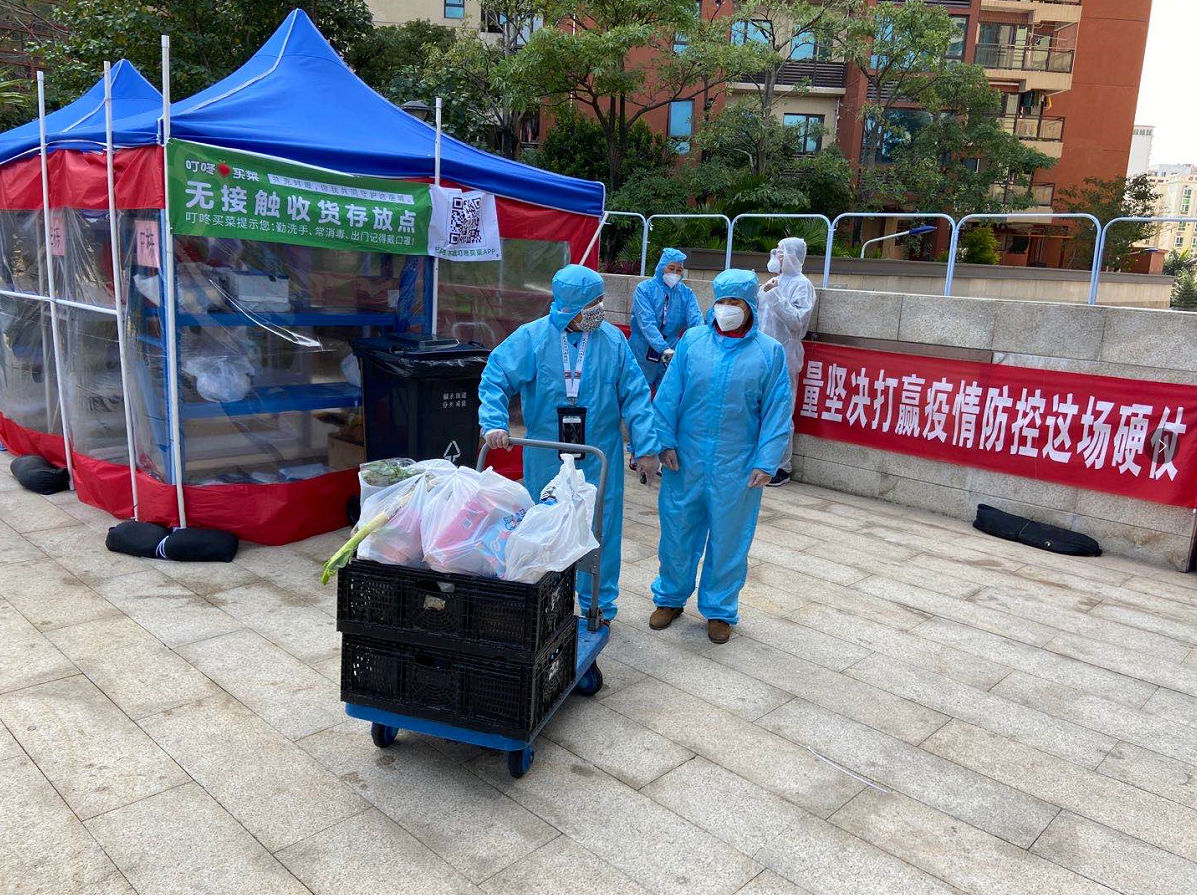 “阿姨,您的菜和快递我放在门口了,过会出来拿一下,如有身体不适请及时通知我们。”