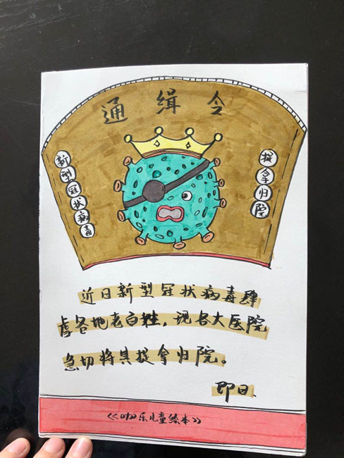 一场突如其来的疫情让喧嚣化为沉寂,处在隔离期间的父母该如何向孩子解释目前整个局面的缘由? 观湖街道新田社区37岁的朱月琴,2月22日从温州返深后,母子两人在家居家隔离,一起创作了一套儿童防控新型冠状病毒肺炎的科普立体绘本《通缉令》,让孩子通过创作绘本建立起对疫情的正确认知,自觉提高防护意识,以科学防护知识为儿童群体构筑起一道健康防护墙。