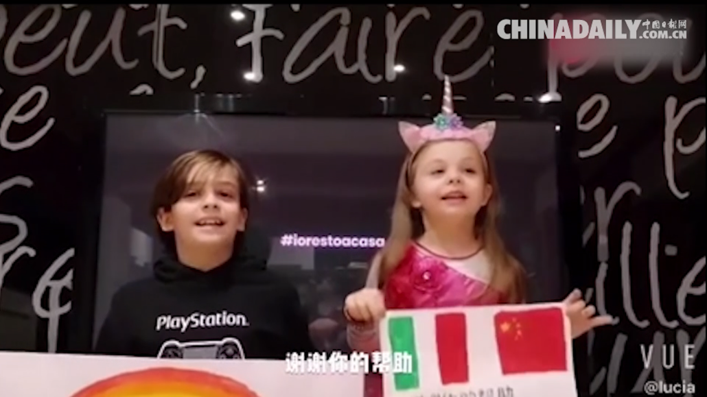 一位意大利父亲还为孩子拍摄了感谢中国援助的视频。