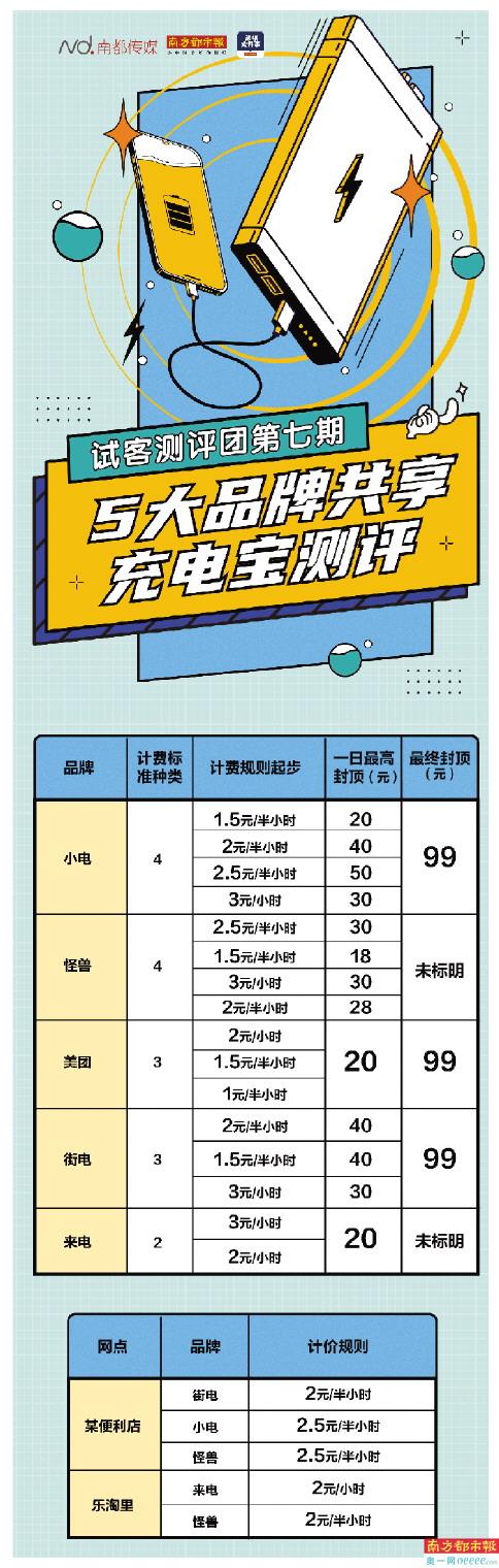 本期,南都深圳大件事试客团队从价格和网点两个维度,对深圳市面上街电、小电、来电、怪兽和美团五个品牌共享充电宝进行调查测评,发现了不少问题。