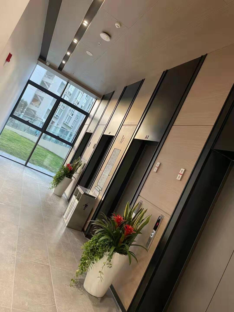 同时,宿舍公共区域候梯厅采用3M膜铝板墙面及亚光不锈钢门套,美观大方,也起到一定的吸音降噪的作用。