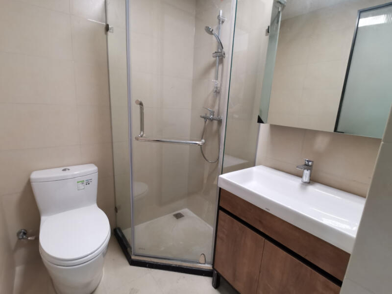 所有宿舍内都设计了独立卫生间,充分了考虑了学生生活需求。在有限的空间内,采用了干湿分离的设计,使用成品玻璃进行隔断。卫生间内定制了成品镜柜及洗漱台,完全可以满足日常生活及收纳需求。