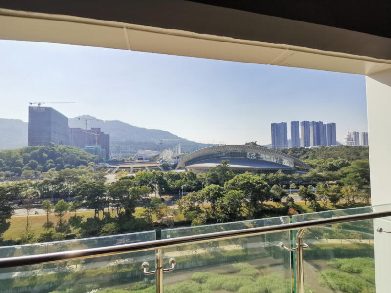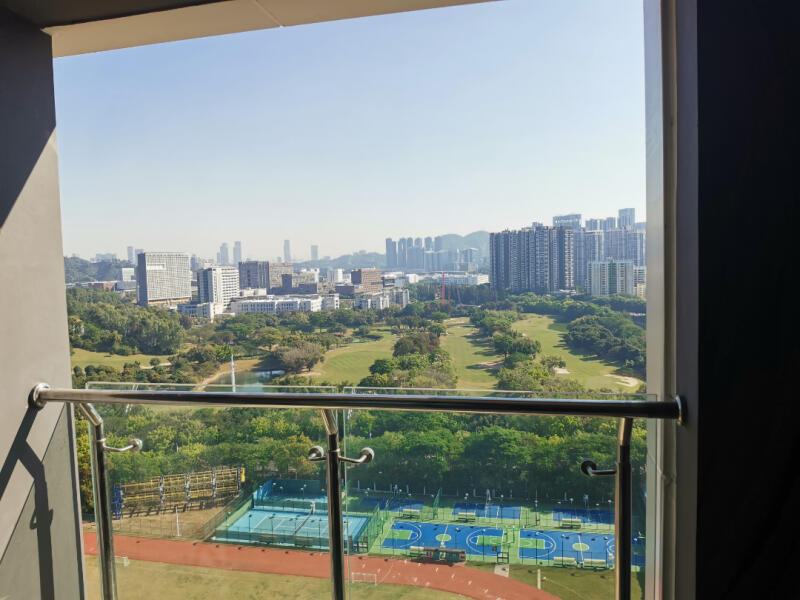 站在A座东面生活阳台,北大深研院风雨操场及西丽高尔夫乡村俱乐部尽收眼底。