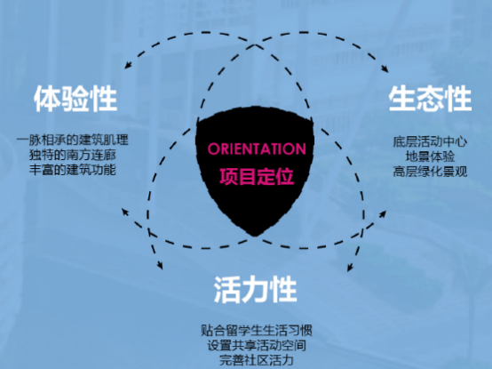 依托周边优质景观资源,充分利用场地现有生态条件,延续作为校园肌理的风雨连廊体系,创造性地引入学生社区概念,打造一个生机蓬勃的留学生活动中心。