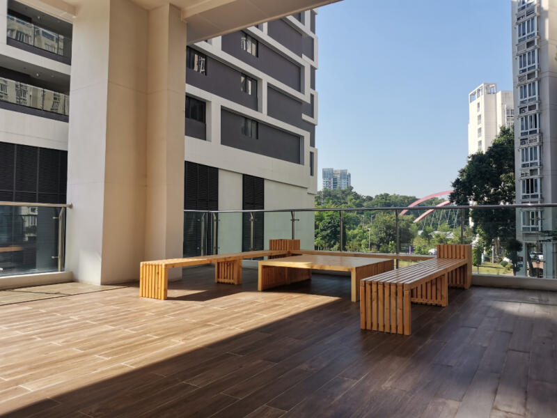 A、B座二层架空,同时设计了大面积公共活动空间,并搭载了配套休闲座椅,可作为小型学习活动区及架空景观区双重利用。