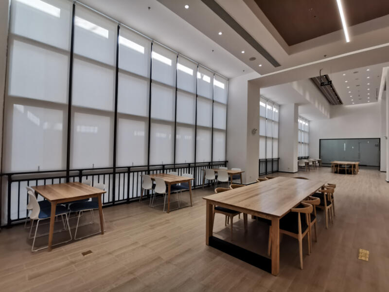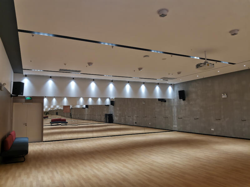 地下室负一层休闲区设计了书吧、交流厅、舞蹈室及健身房等丰富的业余活动场所,供同学们在课外业余时间休闲娱乐。