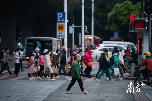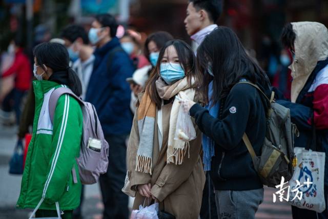 年底压轴寒潮“速冻”来袭,在广州街头上班上学的市民,纷纷穿上了久藏的羽绒服来防寒保暖。