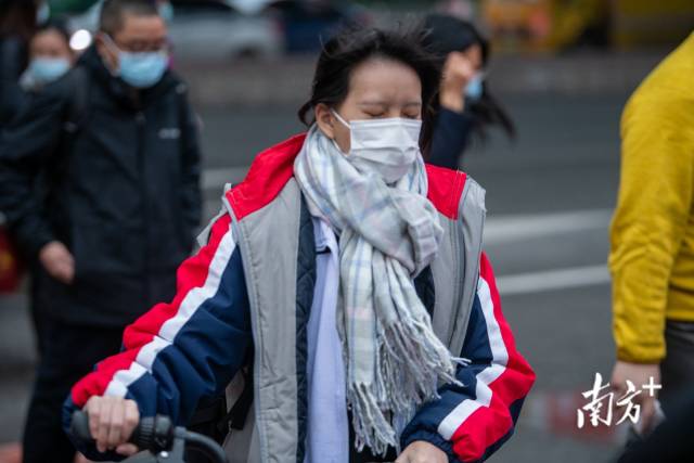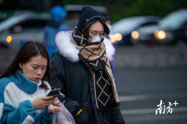12月27日7时,广州市区气温低至7摄氏度,东晓南路上,市民纷纷穿戴上年度最防冻套装出行。