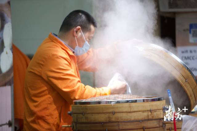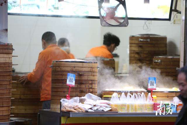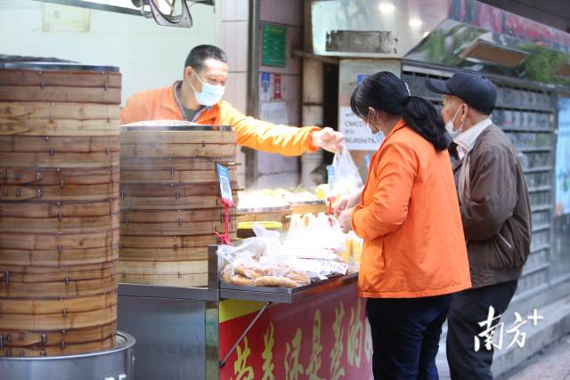 寒潮来袭后的第一个工作日,上班族裹着厚厚的衣服在路边热气腾腾的早餐店买早餐。
