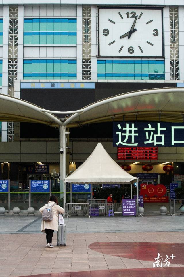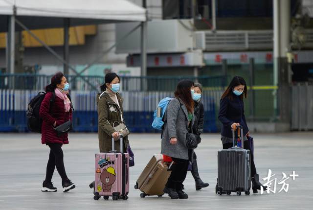 12月27日清晨,广州火车站前广场上,旅客们身披御寒衣物赶早车。广州气象台预测,今日广州市区气温介于6到8℃之间,白天阴天有小雨。