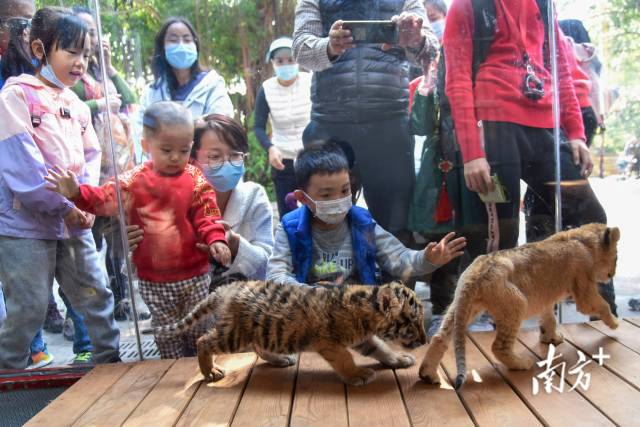 动物育幼中心里的小老虎、小狮子、小豹子萌态十足,尤其受到小朋友的喜爱。