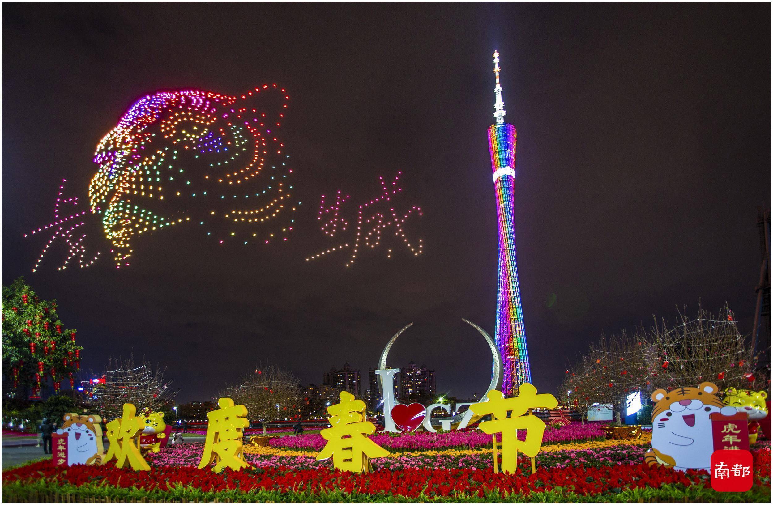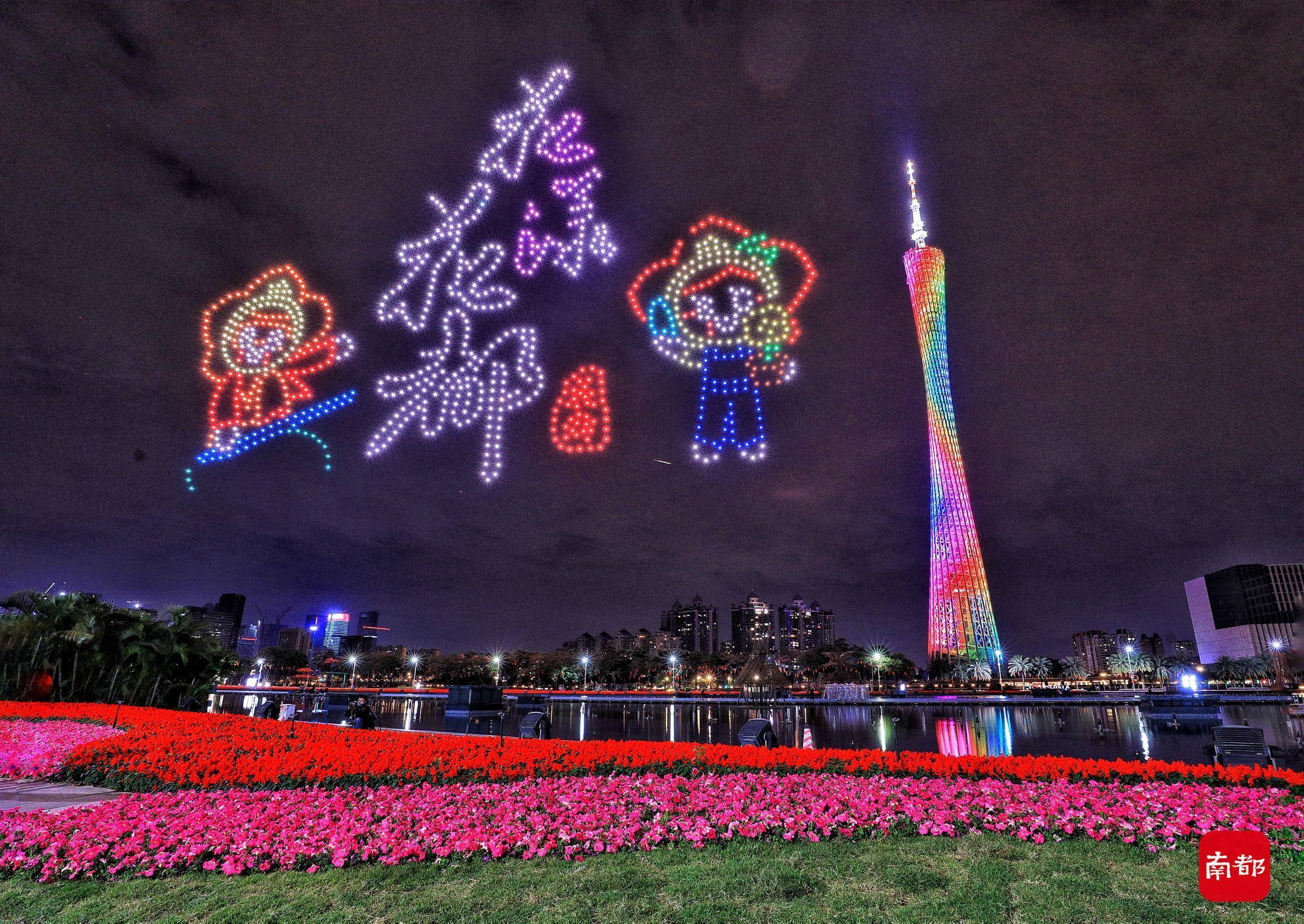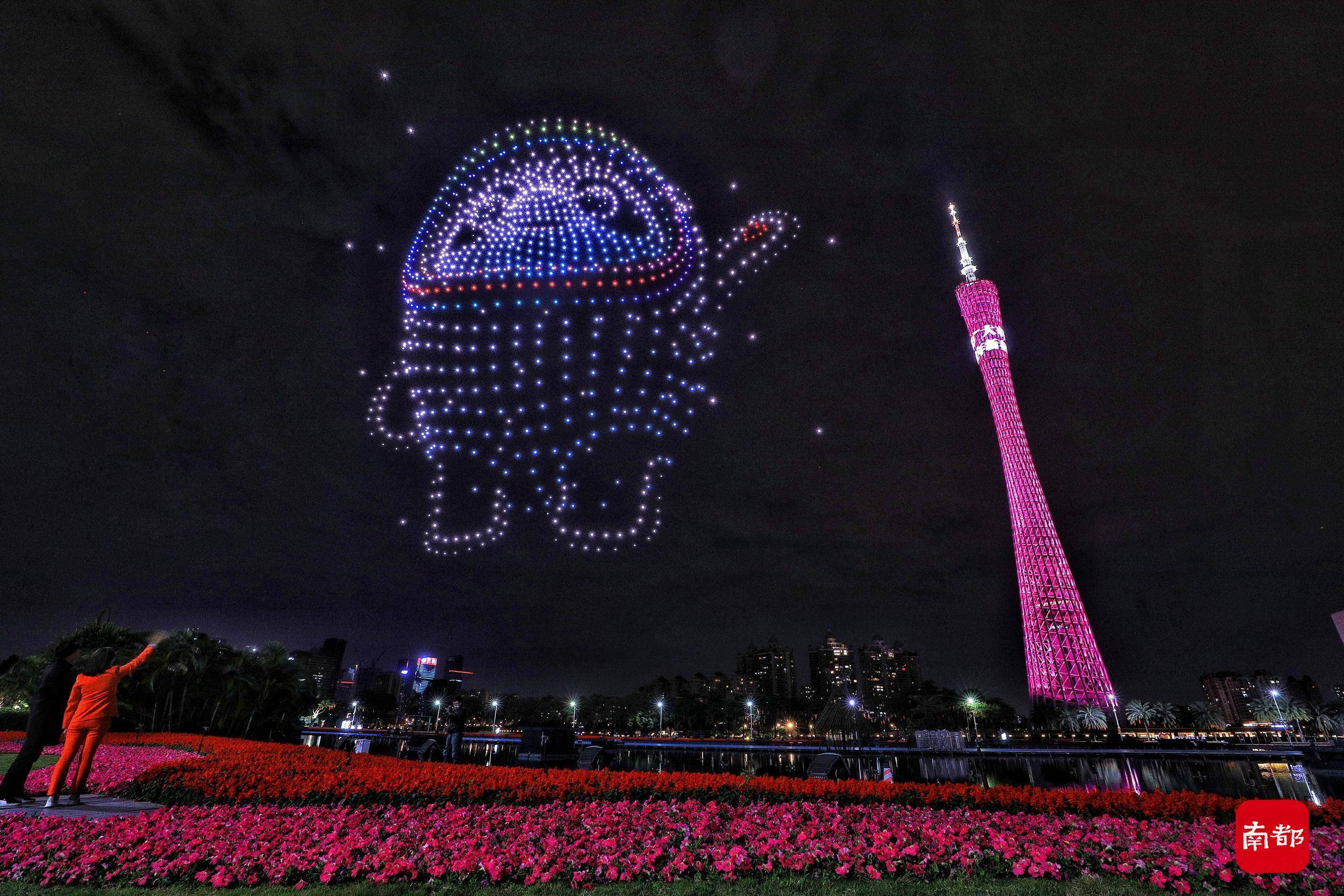 恰逢冬奥遇上虎年新春,一场世界瞩目充满期待的体育盛事,一个隆重盛大举国欢庆的中国传统节日,让南国花城今年的年味有了不一样的意义。1月30日晚,“庆新春 迎冬奥”主题无人机编队飞行表演在广州海心沙举行,1000架无人机献上“空中贺礼”,组成天幕上的“冰墩墩”“雪容融”,共庆新春冬奥双彩到。