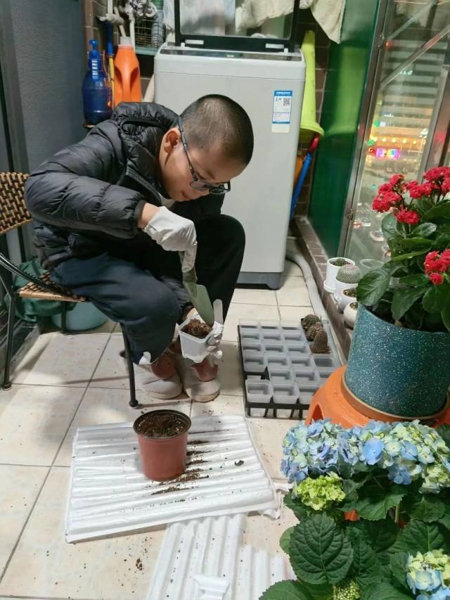 同样作为试点学校,向西小学的学生们在家里也安排了每天做劳动的计划。四(5)班姚浚轩这个寒假做起了“家务研究员”——“怎么让仙人球自由生长”“怎么切葱花比较方便”“煮鱼粥时要特别注意什么”……这些问题都被他在实践中一一找到了答案。他的班主任杨莉表示,从中看到了一个细心、耐心又阳光的姚浚轩。