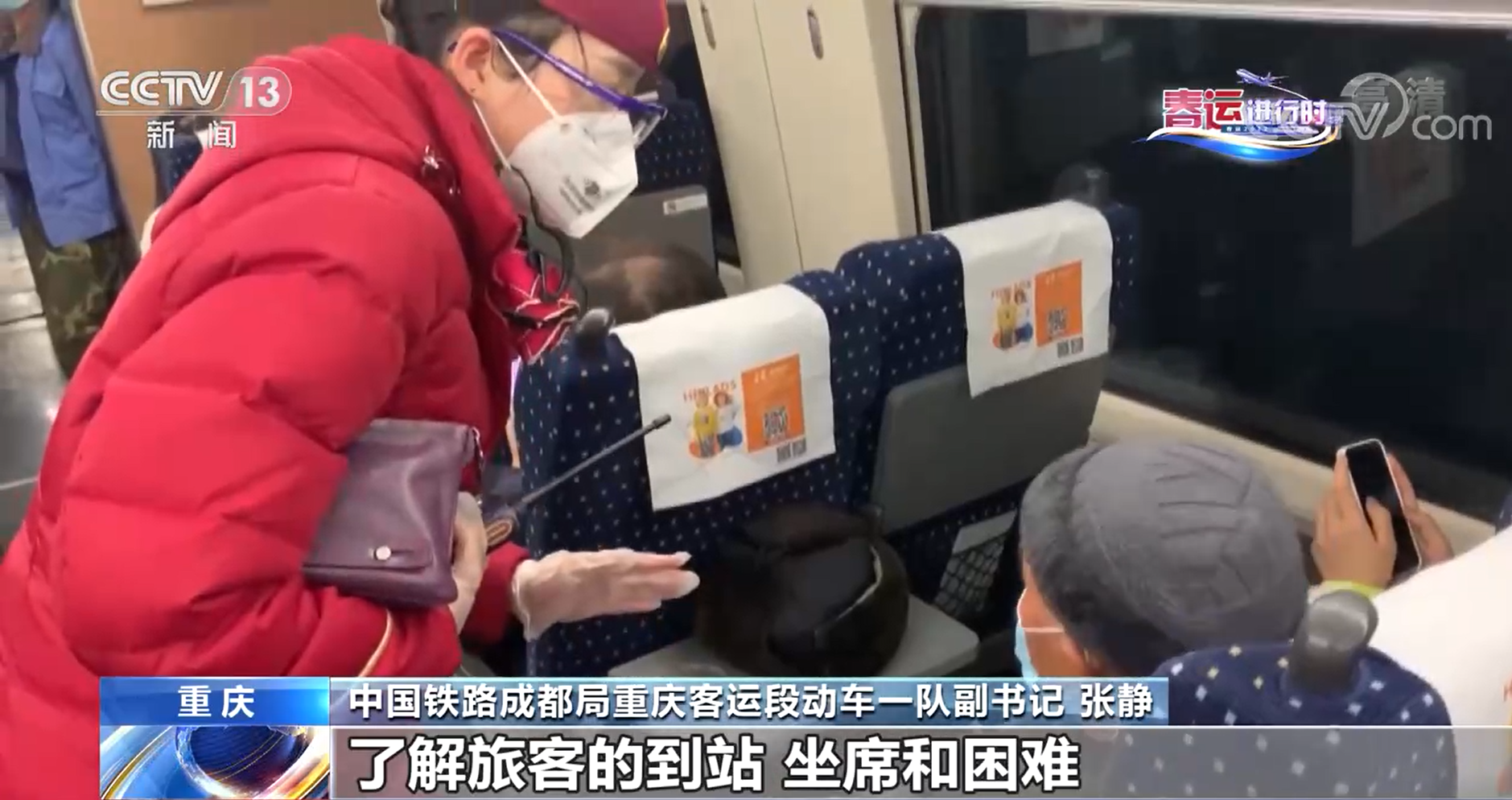 中国铁路成都局重庆客运段动车一队副书记 张静:我们要求职工在发现有困难旅客时,了解旅客的到站、坐席和困难,并做好登记、服务。