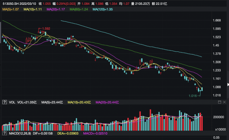 公告日开盘,中概互联网ETF高开低走,不过仍然较前一日上涨,当日收盘报1.055元,涨幅0.29%。而前一次该基金提示溢价风险还是在去年8月。此前的3月8日盘后,易方达基金公司一次性公告8只QDII基金暂停或者调整大额申购,其中包括中概互联网ETF基金联接基金。