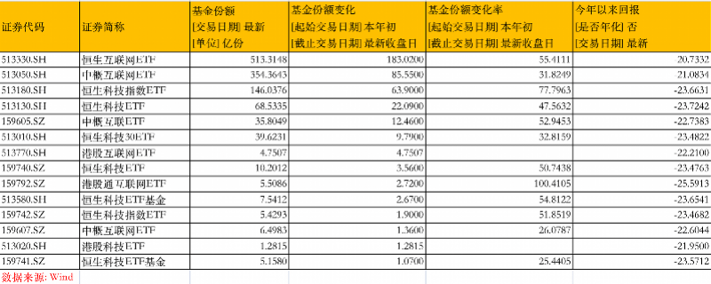 透过基金份额变化数据还可以看到,投资者对互联网中概的抄底情绪。Wind数据显示,恒生科技指数、恒生互联网科技业指数、中证海外中国互联网50指数、中证港股通互联网指数、中证海外中国互联网30指数、中证港股通科技指数等相关的14只基金,年初以来资金净流入近400亿元。但与此相对应的是,年初以来,这14只基金均下跌超20%。