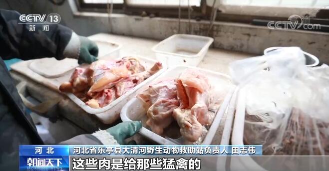 田志伟:救护鸟来说,你如果不了解它的话是很难救助的。最开始救助是在我们家里,罚没的蛋到我们家里边来孵化,比带小孩还不容易。这些虾是给遗鸥的,这些肉食是给那些猛禽的。