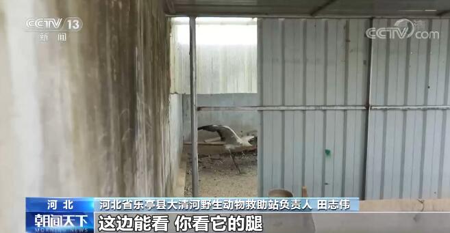 田志伟:这是前两天新救助的一只灰鹤。因为在这个里边你可以稍微慢一些,这边能看,你看它的腿。