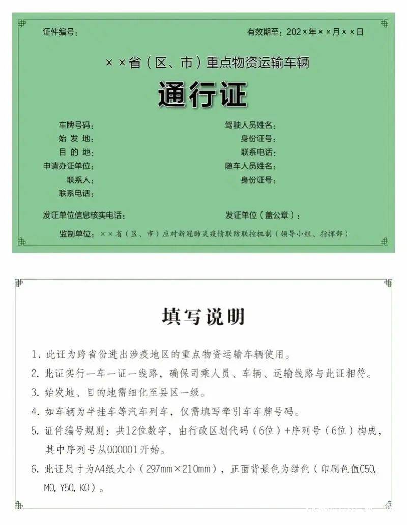 通知明确,《通行证》由省级联防联控机制统一监制,由省级相关部门核发。启用《通行证》地区的重点物资收发货单位,可根据物资类别,向所在地发展改革、工业和信息化、公安、交通运输、商务、农业农村等部门提出申请。运输起讫地均未建立《通行证》制度的,无需办理《通行证》。