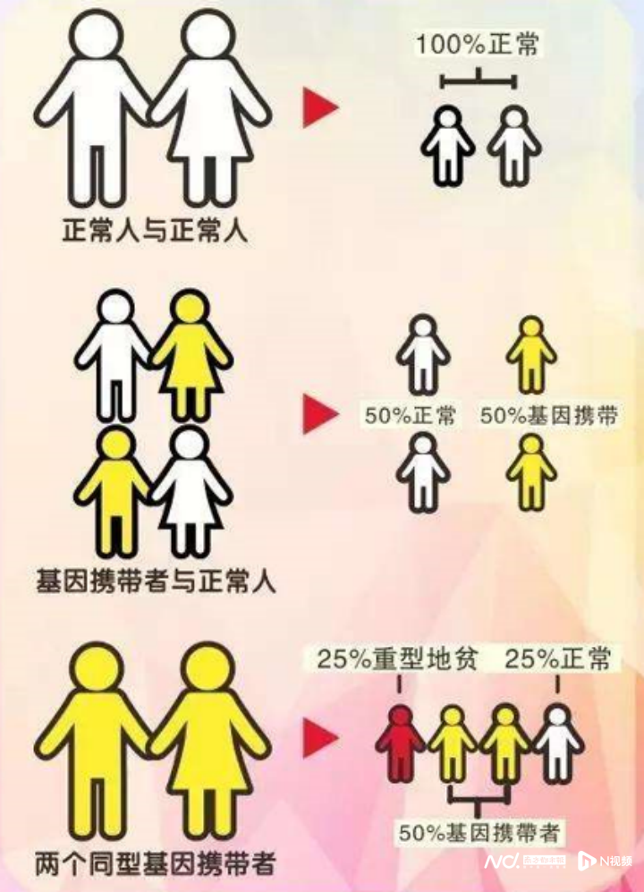 地中海贫血呈常染色体隐性遗传。根据基因缺陷类型的不同,地贫主要分成α地贫或β地贫。若夫妇双方为同一类型地贫基因携带者,则有25%概率生出中/重型地贫患儿,25%概率生出健康的孩子,50%概率生出地贫基因携带者。