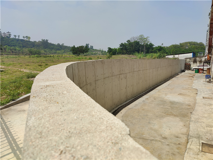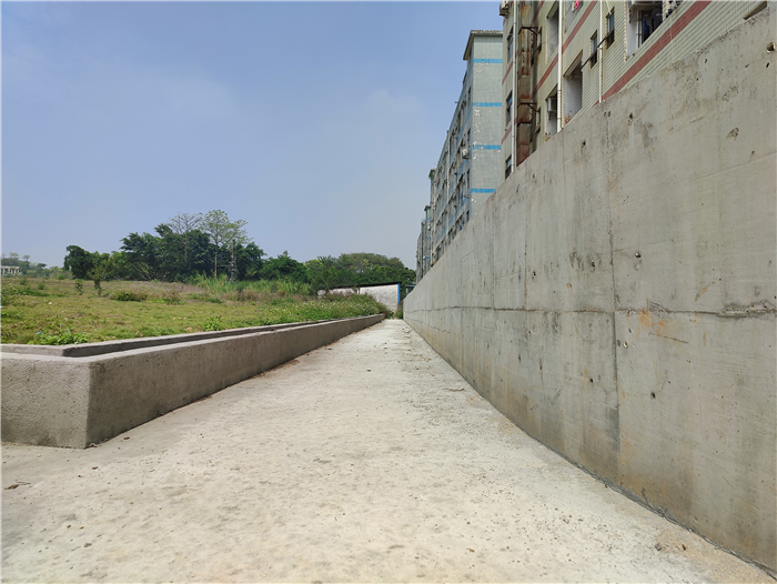 现场,记者看到,这块新建挡墙长约50米,墙高2.5米,墙厚20厘米。街道相关工作人员介绍,项目主要建设内容为拆除破损围墙、垃圾清理、新建混凝土挡墙、新建截水沟等。“由于墙体前后有高差,故1.2米以下按悬臂式挡土墙设计,1.2米以上按素混凝土围墙设计。为提高周边排水能力,我们在挡墙前新建了48米长截水沟,在原有雨水井埋双臂波纹管排水管将截水沟的水接入。墙体每隔2米还设置了一段泄水孔,确保排水通畅。”