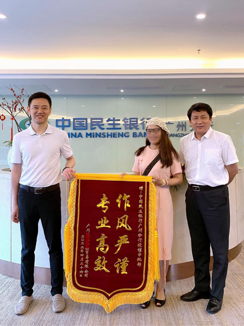 “衷心感谢贵行在疫情期间特事特办,开辟业务绿色通道,为我们解决了燃眉之急。”4月29日,广州某外资贸易有限公司财务负责人手持题有“专业成就效率 服务铸就未来”“雪中送炭真诚为商”“作风严谨 专业高效”等内容的三面锦旗送到广州分行,并感谢到“作为多年合作伙伴,我们对贵行所作出的暖心服务、体现的责任担当表示衷心的感谢!”