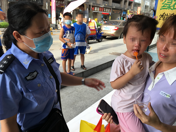 6月5日,在端午假期的最后一天,鹤洲网格巡查中队坚持开展错峰巡查行动,社区网格员黄天虹正途径一南北药店门口时发现一名约两岁的小女孩在不停地哭泣,且大声的喊着“妈妈、妈妈”,疑似走失。黄天虹见小女孩在路边单独行走,周围没有家长看护又靠近车道,情况危急,立即上前蹲下来询问,但孩子年龄太小表达不清,无法准确告知家人信息,周围群众也无法提供相关线索。