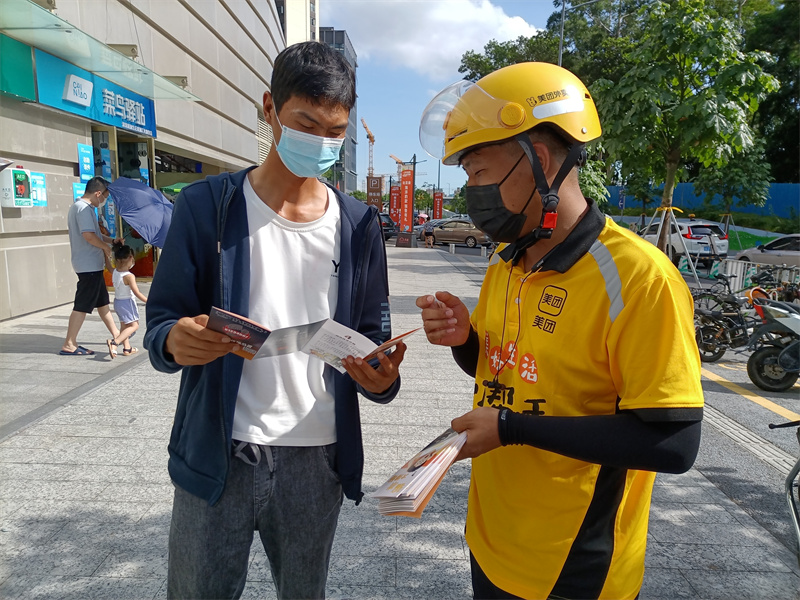 “送外卖的时候,提醒顾客警惕网络诈骗,我觉得这样很有意义,与顾客之间的沟通更有温度了,差评也会少很多,一边送餐一边宣传反诈,我会坚持下去。”美团骑手张凯说道。活动负责人表示,希望更多行业能像美团一样,加入到社区治理行列中来,和社区合力共同筑牢防范通信网络诈骗的“防火墙”,同时,希望骑手们争当“疫情防控员”“平安巡查员”“文明引领员”“社情民意信息员”“政策宣讲员”,打造基层治理“流动前哨”。
