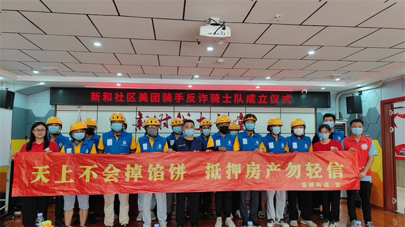 据了解,新和辖区人口约4.6万人,约1万余名年轻人选择外卖解决吃饭问题,而每天穿梭在大街小巷的美团骑手超过300余名,足迹遍布千家万户,在反诈宣传、治安防范及发现违法犯罪线索方面有着得天独厚的行业优势。活动邀请了社区警区反诈专员进行反诈知识宣讲,社区民警以PPT、微视频等形式向骑手们讲述电信诈骗常见的各种手段,模式以及被骗后的补救措施,提高他们的安全防范意识,并现场组建美团骑手反诈骑士队,呼吁大家一起来当反诈宣传员,倡导骑手在服务的同时,在社区每个角落进行反诈宣传。随后,美团骑手反诈骑士队走上街头,将所学知识学以致用,通过这种常态化、精准化的宣传措施,像广大居民普及防骗知识,营造“人人识骗、全民防骗”浓厚氛围,守护好辖区居民的“钱袋子”。