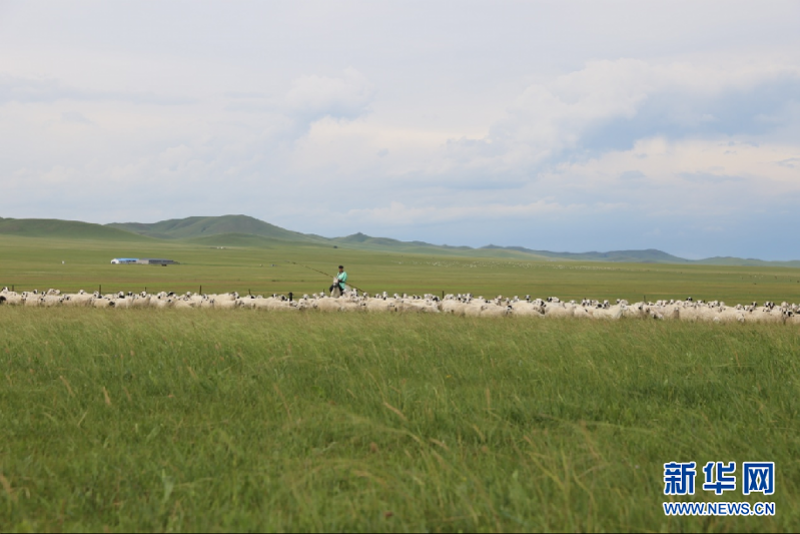 盛夏的午后,赛音巴雅尔的二儿子在草场上放牧,尾大身长的乌珠穆沁羊个个膘肥体壮,广阔的大地上,“绿毯”均匀的披在上面,随风摇曳。(完)