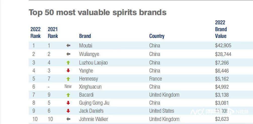 报告认为,茅台是世界上最具价值的烈酒品牌,价值429亿美元。该品牌在2022年度全球最具价值烈酒品牌50强排行榜上保持了第一名的位置,继续以其标志性的饮品引领行业并主导了中国市场。