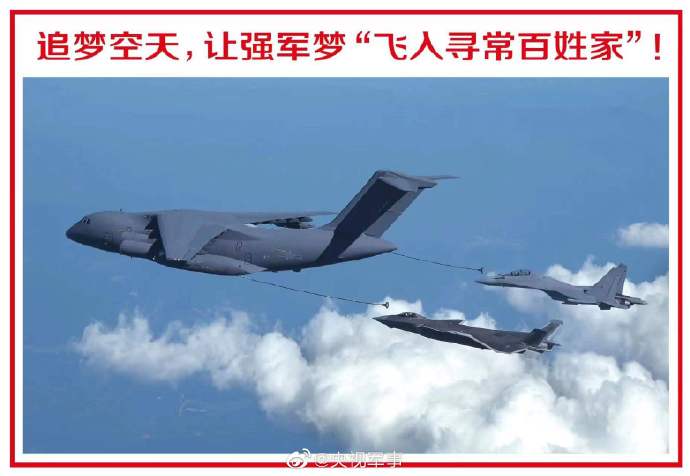 央视网消息:据@央视军事 微博消息,2022空军航空开放活动暨长春航空展新闻发布会上,重磅发布运油-20、歼-20、歼-16三机同框照。