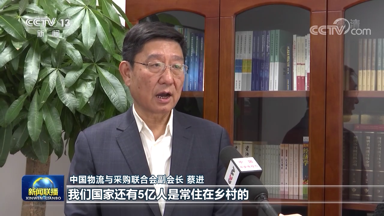 中国物流与采购联合会副会长 蔡进:目前来看的话,我们国家还有5亿人是常住在乡村的,通过农村物流的发展,也能够进一步地释放农村的消费潜力,对于建立全国统一大市场来讲的话,是一个重要的支撑。