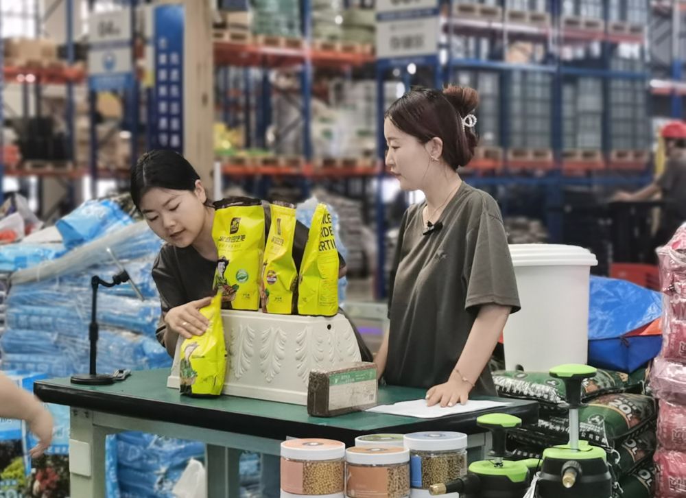 出入库理货区、AGV智能货到人拣选区、电商仓储情景区……走进天津交通职业学院产教融合数智化供应链生产性实训中心,料箱式机器人在人员专注操纵下往返穿梭于货架之间,几位学生正热情地为一家花卉园艺企业直播带货。