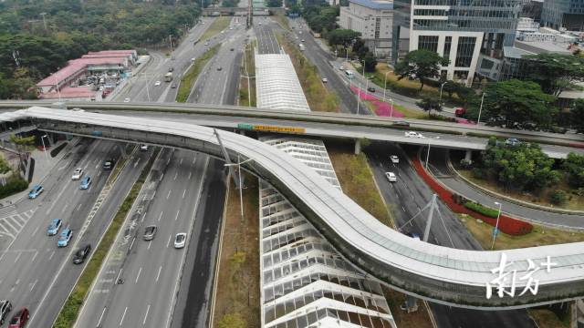 桂庙路东行和西行隧道双向开通后,5分钟可从前海中心区抵达滨海超级总部基地,15分钟可达福田中心区,大大缩短了前海与市中心区之间的通行时间,有效促进深圳都市核心区内的高效联通,同时,将部分过境交通流从桂庙路地面道路剥离,有效缓解桂庙路地面交通拥堵,改善南山高新园片区及周边居民的交通环境。