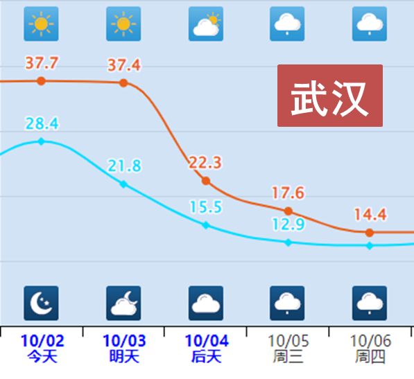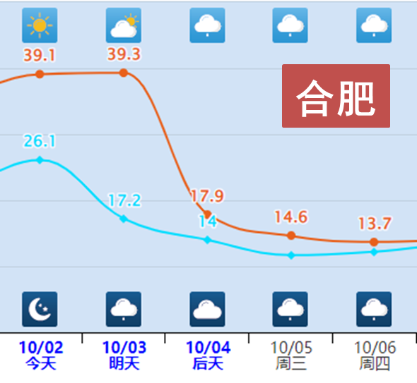 期间,南京、合肥、武汉等省会城市的日最高气温将由2日的37~39℃降至13~15℃、最低气温由26~28℃降至11~13℃。