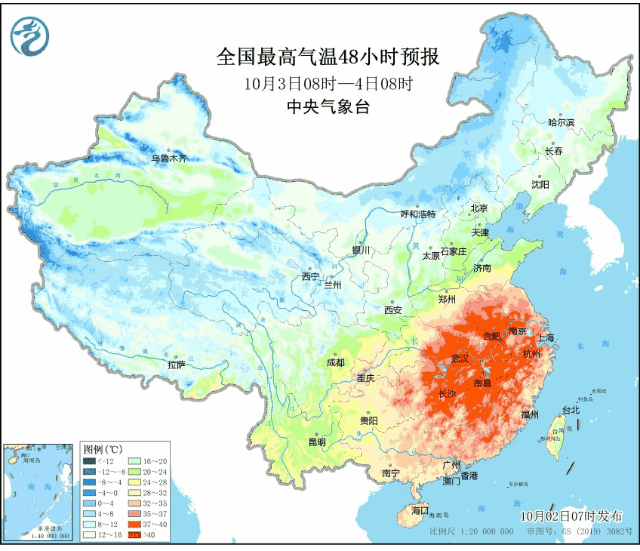 据最新气象监测显示,昨天(10月1日),河南南部、安徽、浙江中西部、福建西部、江西、湖南中北部、湖北中东部等地出现35~37℃高温天气,局地38~40℃;其中,江西、湖北、河南、安徽、浙江、湖南、福建等地共247个国家气象站的最高气温突破10月历史极值。